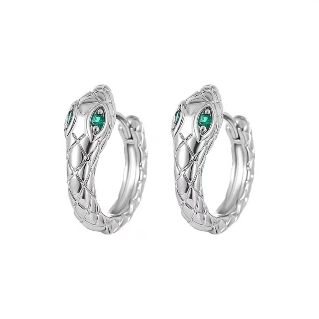喜飾銀匠999純銀緑眼霊蛇耳輪男独特デザイン感イヤリング痞帥高級感耳飾り