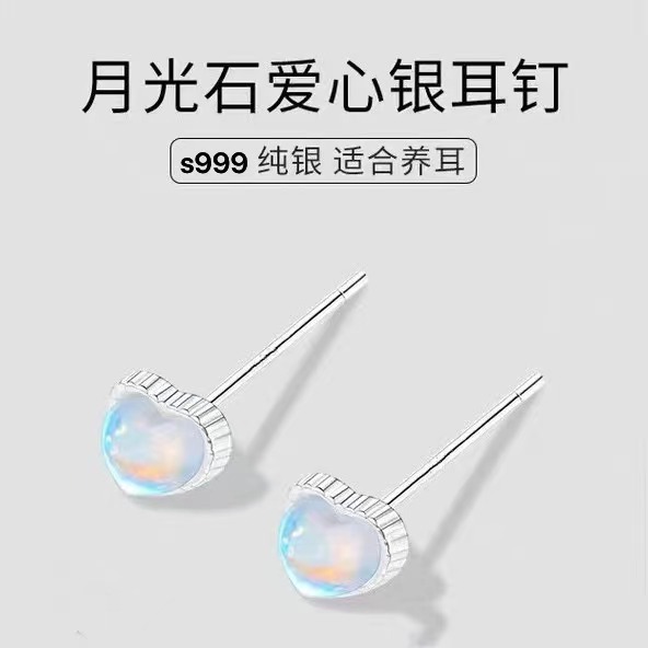 喜飾銀匠999純銀月光石ピアス女性2025新シンプル小大衆高級感愛耳飾り