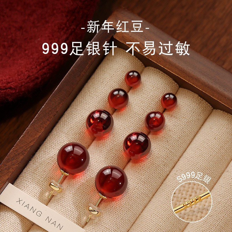 喜飾銀匠999足銀ガーネットピアス2025新起爆新年プレゼント復古赤色耳飾り代発