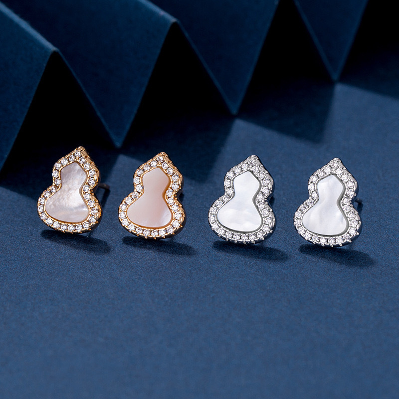 喜飾銀匠925純銀ひょうたん貝殻ピアス女性国風軽贅沢気質高級感復古耳飾り代発