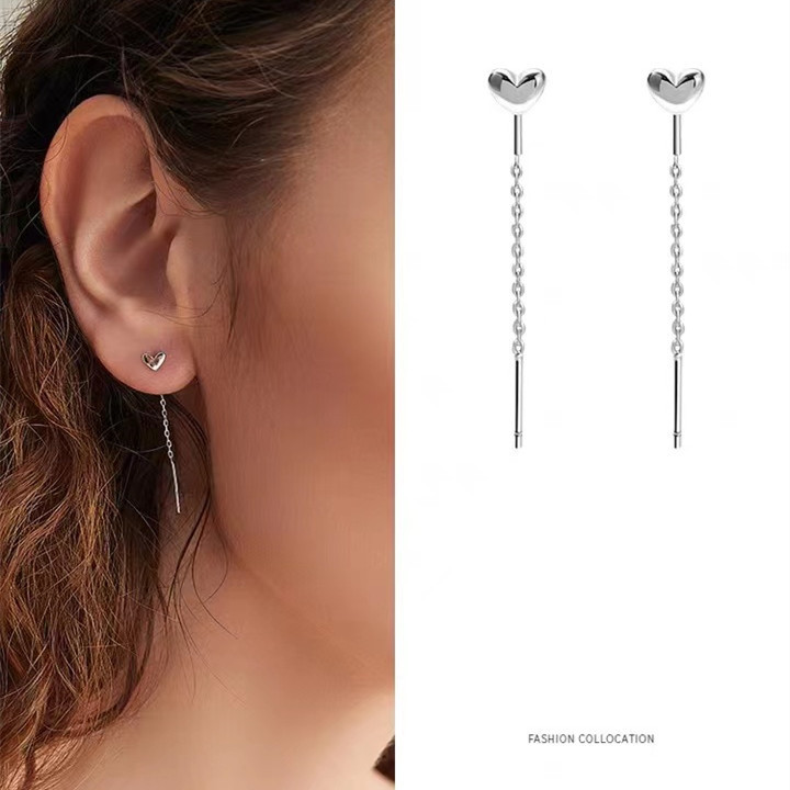 銀匠925純銀耳糸独特気質ファッション桃心流蘇耳ペンダント高級感甘美耳飾り女
