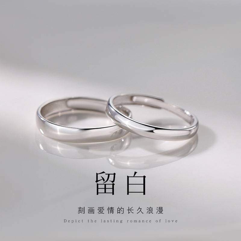 喜飾銀匠999足銀光沢面カップル対戒シンプル開口戒男女素輪指環食指環代発