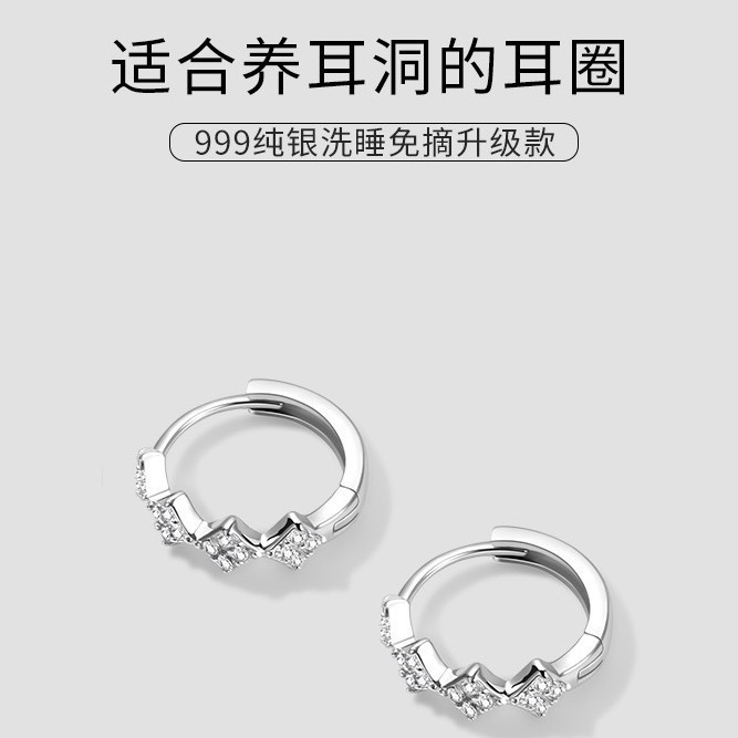 喜飾銀匠999銀イヤリングシンプルな個性的な幾何学的なダイヤモンドのデザイン感の耳のボタン2024新型耳飾り代発