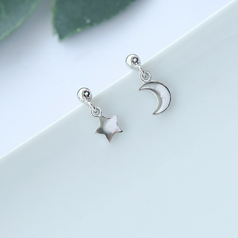 喜飾銀匠925純銀星月ピアス学生かわいい星月非対称甘い耳飾り女性代発