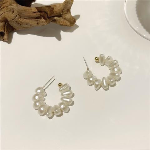 喜飾銀匠c型異形真珠イヤリング大衆デザイン感高級冷淡風耳飾り女2024年新作