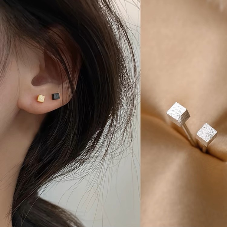 喜飾銀匠s999純銀シンプルミニ伸線立体ブロックピアス韓国版小清新甘美メーカー