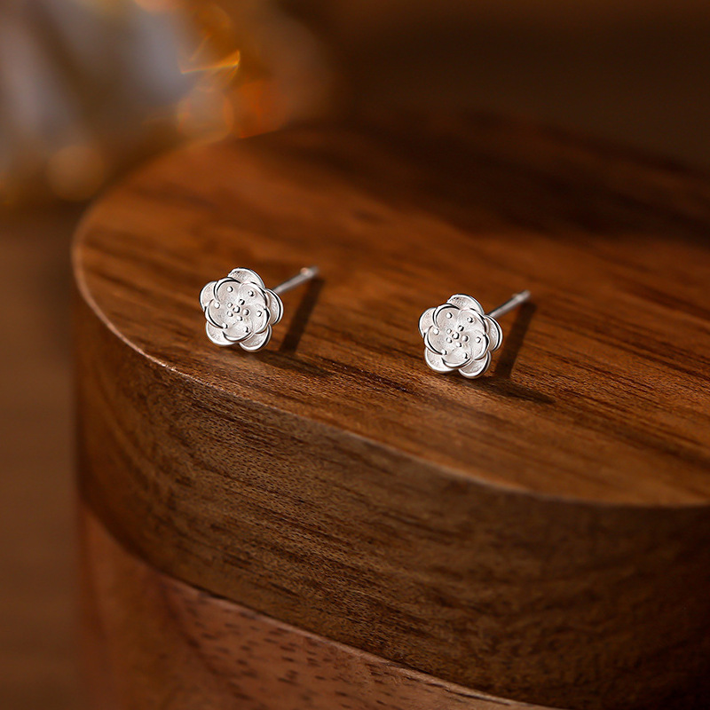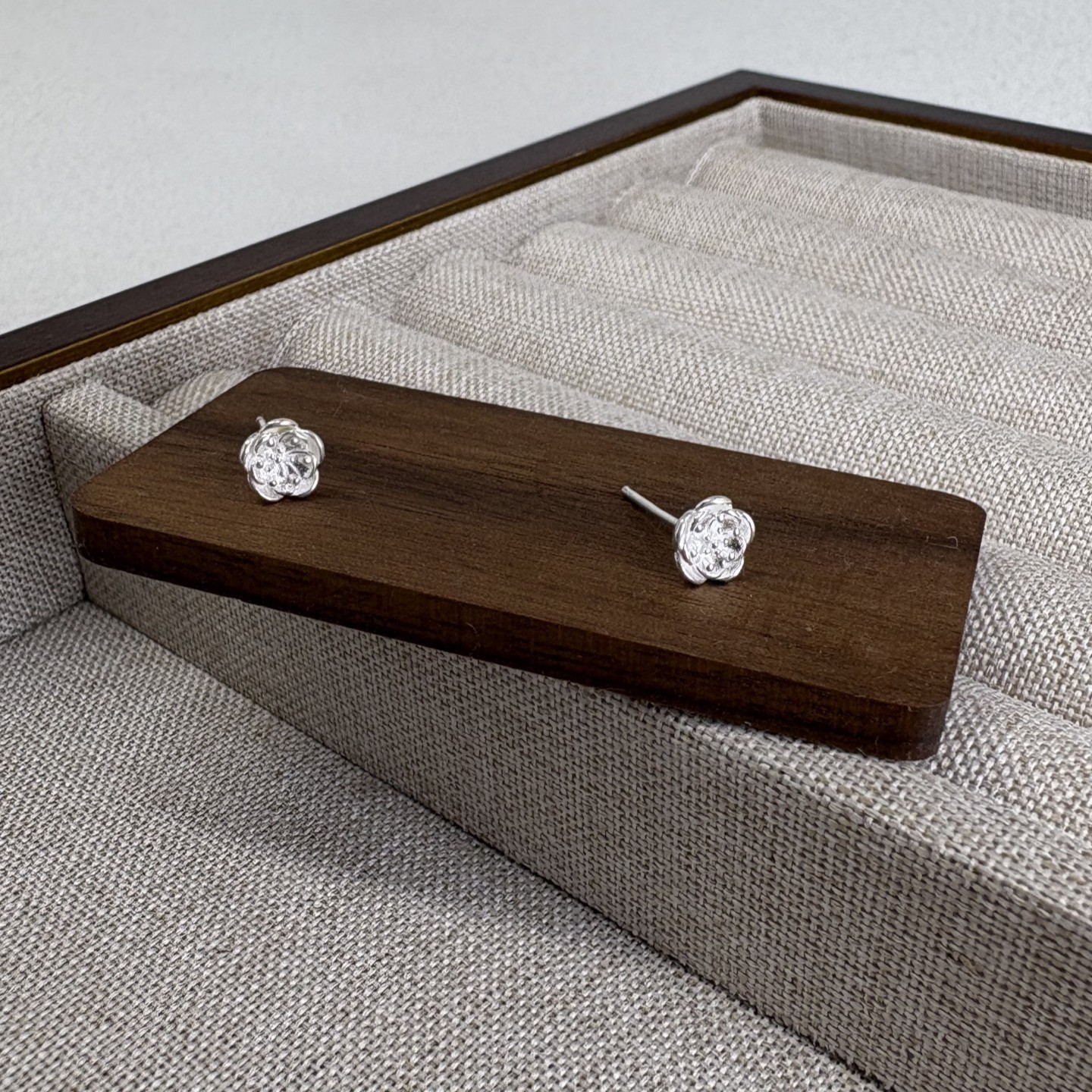 Xishi Silversmith 999 純銀椿イヤリング女性用、小さくて絶妙な 2025 新しいイヤリング、就寝時に外す必要はありません