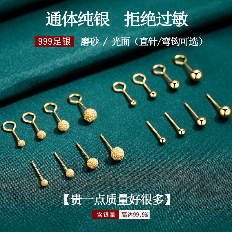 喜飾銀匠999純銀ピアス女性シンプルイヤリング小柄星月森系耳棒養耳穴防栓