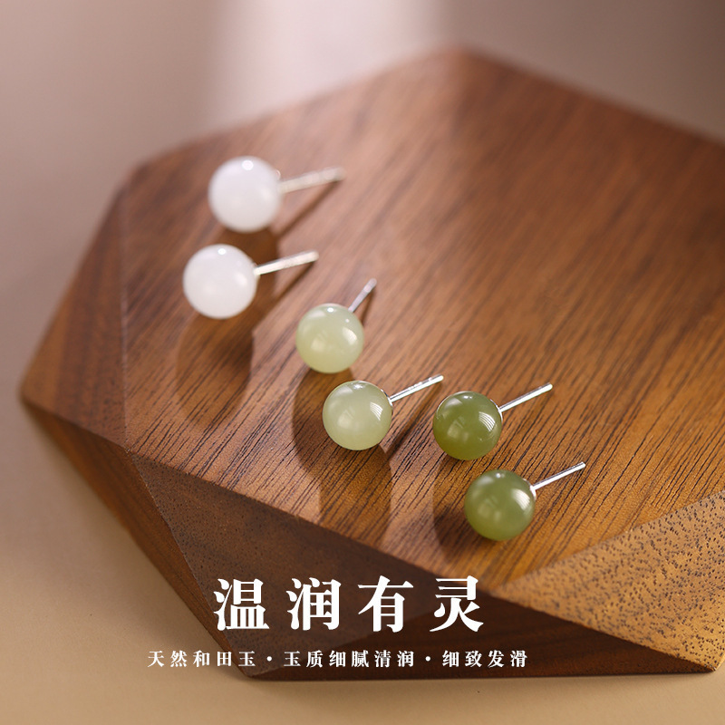 Xishi Silversmith s999 スターリングシルバー Hetian Jade イヤリング 2025 新しいホットスタイルイヤリングハイエンドライト高級イヤリング男性と女性用