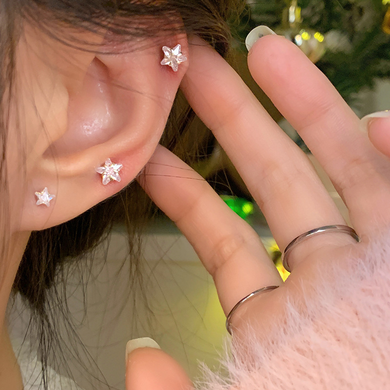 喜飾銀匠999純銀星ピアス女性耳穴耳ウォームピアス無料イヤリング代発耳骨釘