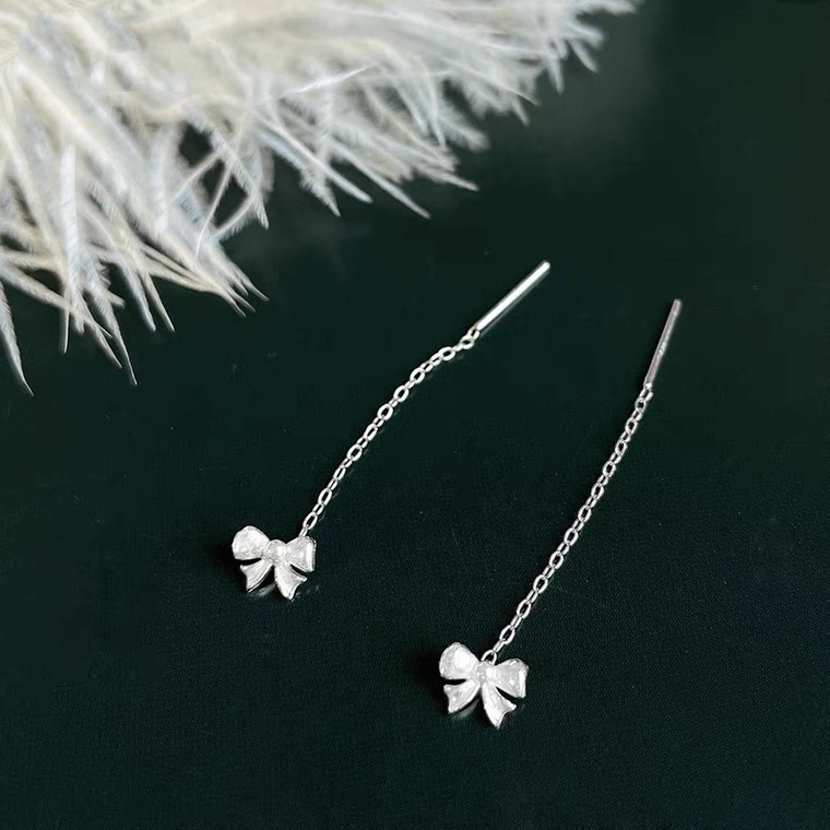 喜飾銀匠s999純銀蝶結び耳糸小衆気質流蘇イヤリング女韓系軽贅沢insピアス