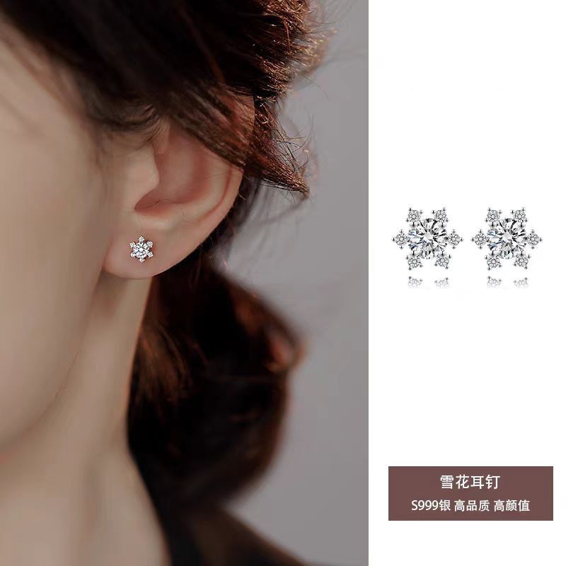 喜飾銀匠999純銀清新森系雪花ピアス女子学生軽豪華高級感冷淡風耳飾り代発