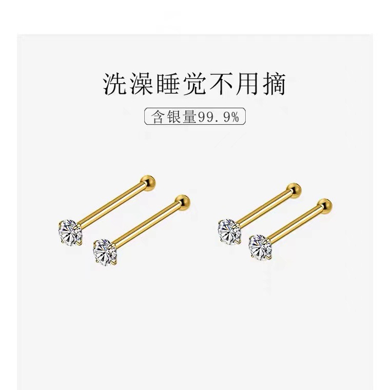 喜飾銀匠s999純銀無塞耳釘耳棒耳穴耳骨釘睡眠無摘耳アクセサリー