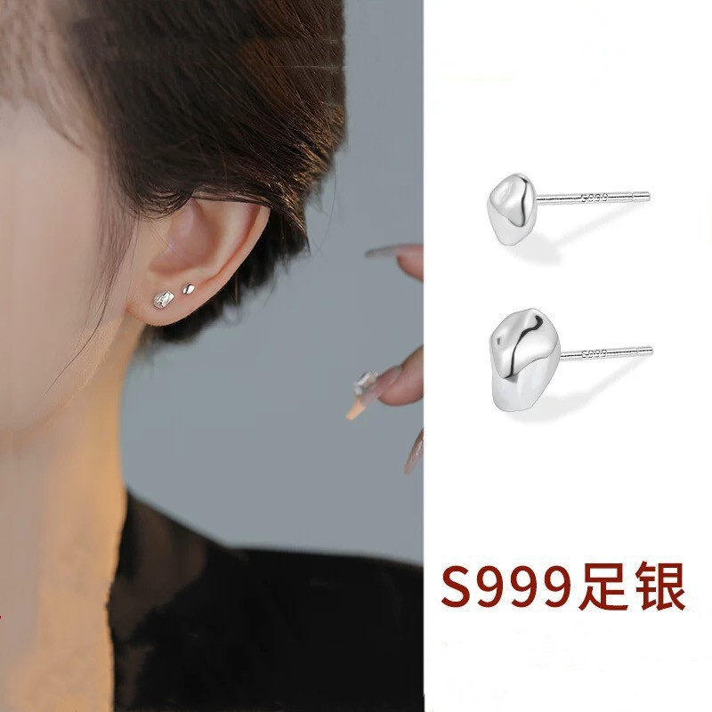 喜飾銀匠s999純銀隕石ピアス新潮insシンプル冷たい風イヤリング高級感耳飾り代発