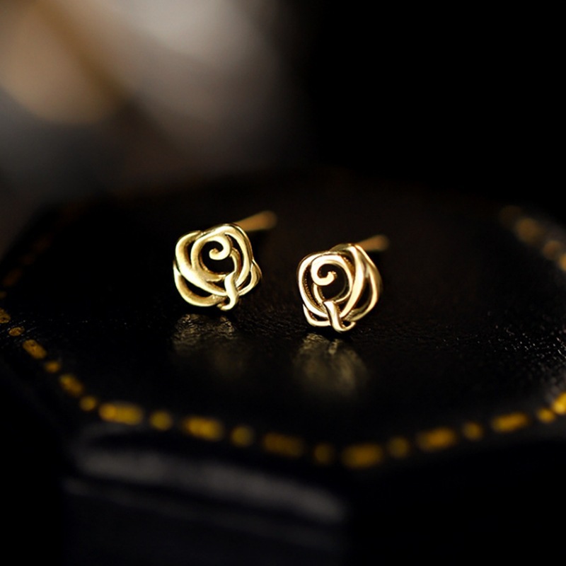 喜飾銀匠999純銀バラピアス小柄な女性2023年新作ファッションイヤリング