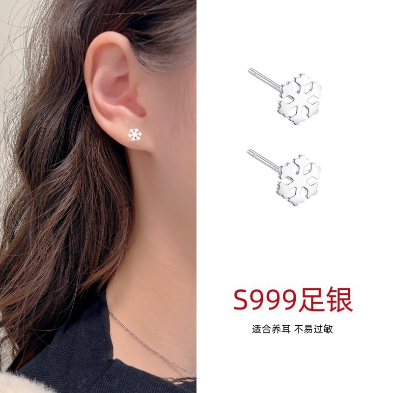 喜飾銀匠s999足銀雪花ピアス純銀耳飾り耳棒耳穴防止針女性耳針洋気