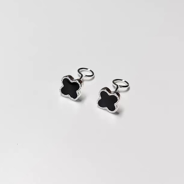 喜飾銀匠999純銀四葉草ピアス韓シンプル幸運耳飾り黒ファッション気質女子イヤリング