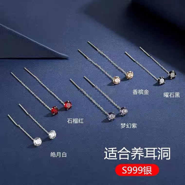 喜飾銀匠s999純銀ジルコン耳糸女性シンプルで贅沢な耳のペンダント個性流蘇イヤリング足銀ピアス