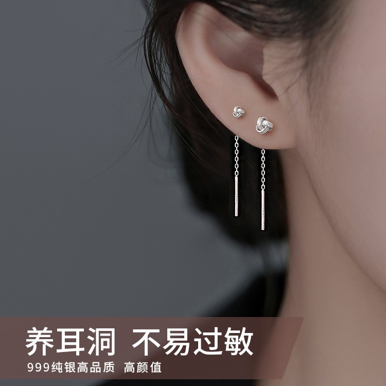 喜飾銀匠999純銀如意結耳糸女小衆軽豪華耳釘2024新型起爆イヤリング耳飾り