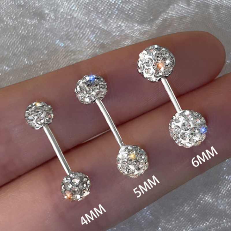 喜飾銀匠999純銀ピアス女性耳洞耳骨釘小衆高級感ジルコン内耳ダイヤモンドイヤリング