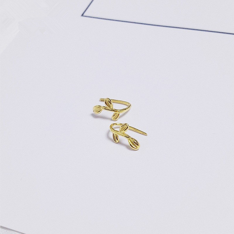おめでたい銀匠999純銀葉ピアス女性耳クリップイヤリング耳飾り小清新気質個性シンプル耳フック