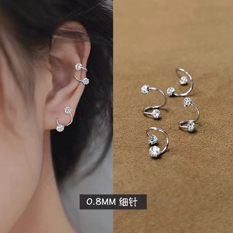 喜飾銀匠s925純銀s型超閃耳骨釘2025新型大衆独特設計感ねじ耳飾り