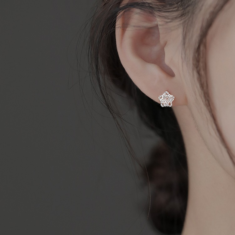 喜飾銀匠925純銀デイジー幾何学立体耳ボタン清新気質ネット赤同花耳飾り卸売り