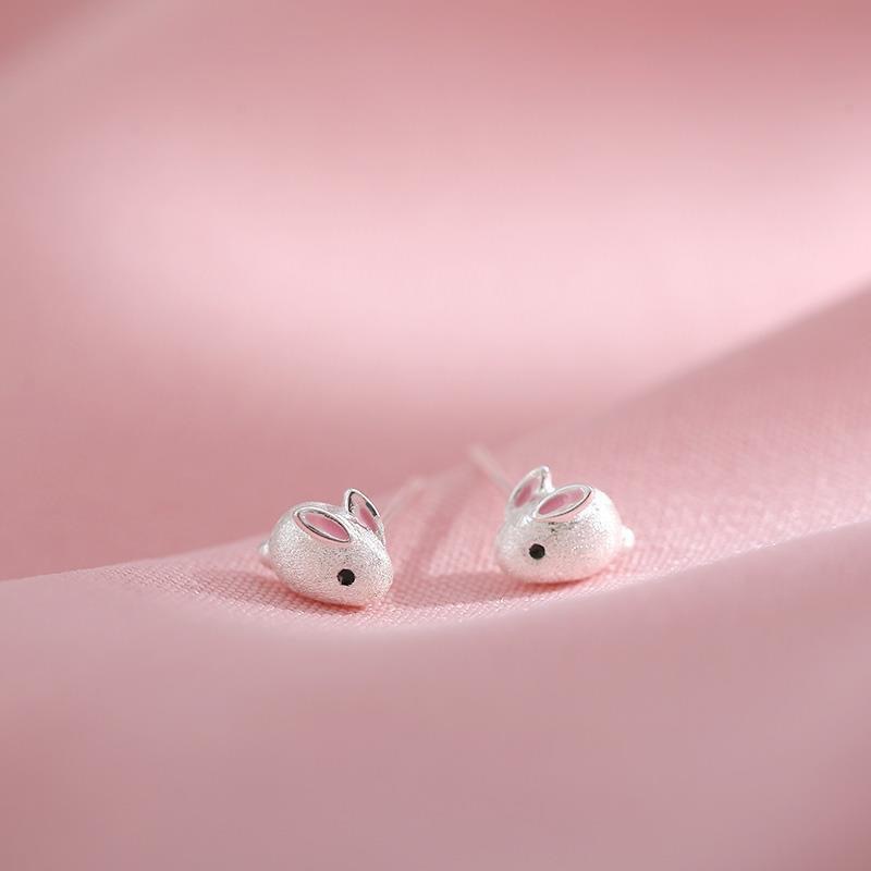 喜飾銀匠s999純銀ウサギピアス女性かわいい森系小柄で洗練されたins少女心耳飾り代発