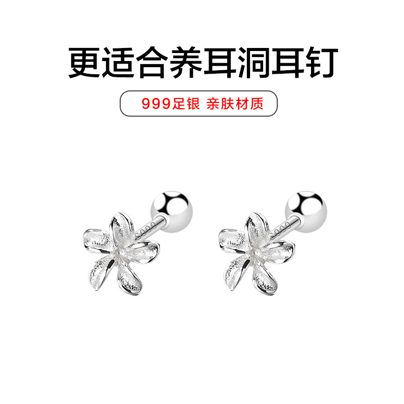 Xishi Silversmith 999 純銀フラワースクリューイヤリング、女性用、小さくて絶妙、耳の洗浄と就寝用、取り外し不要のイヤリング、ドロップシッピング