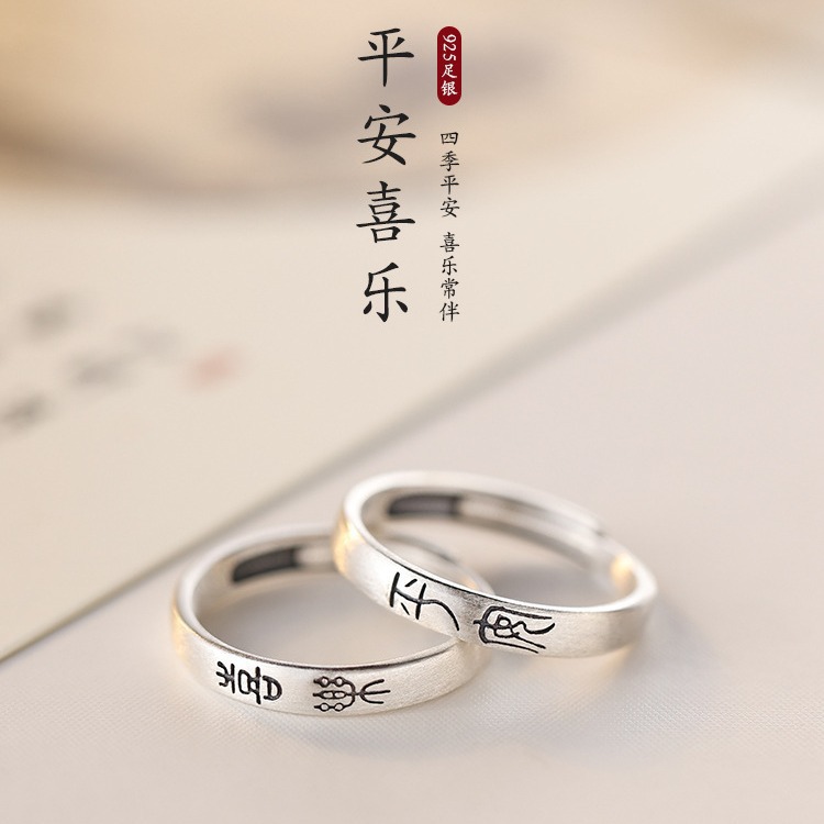 Xishi Silversmith 999 スターリングシルバー 平和と喜びのカップルリング 男女兼用 オープンリング おしゃれ シンプル プレーンリング 人差し指リング