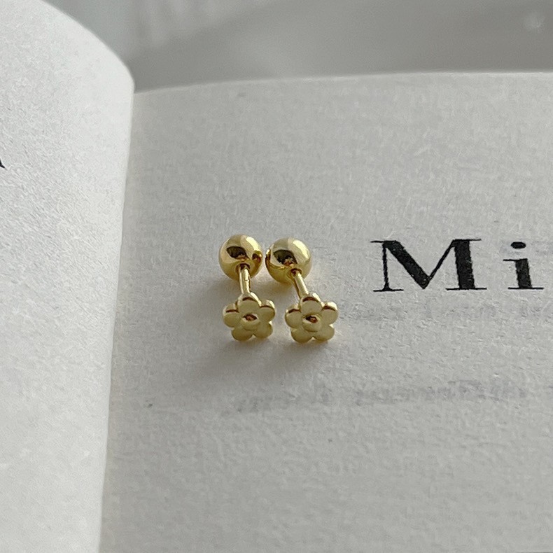 Xishi Silversmith 925 スターリングシルバー日本と韓国のスーパーミニゴールデンフラワーイヤリング気質甘い幾何学的な花のネジイヤリング