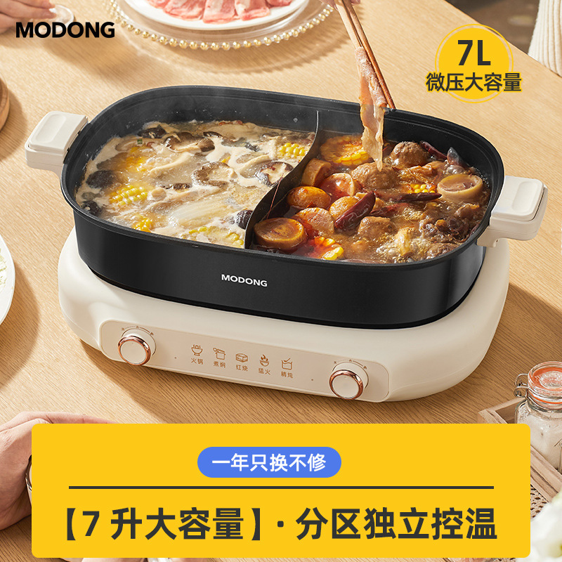 摩動電気鍋家庭用オシドリ鍋分離式7L多機能学生寮電気煮鍋フライパン