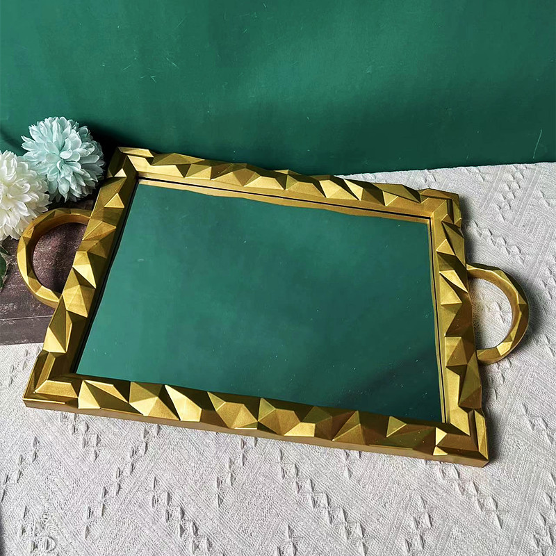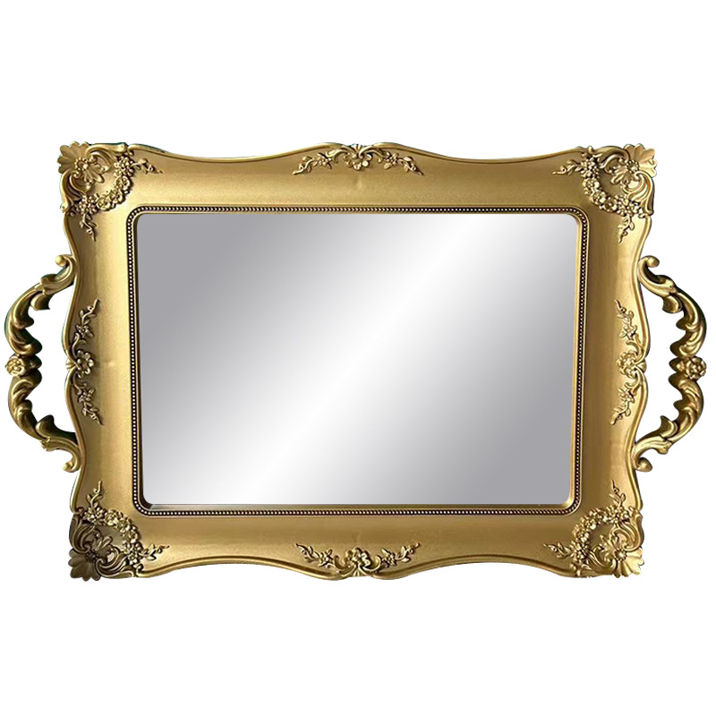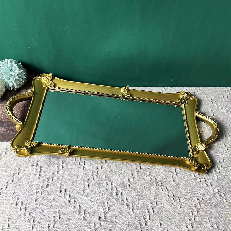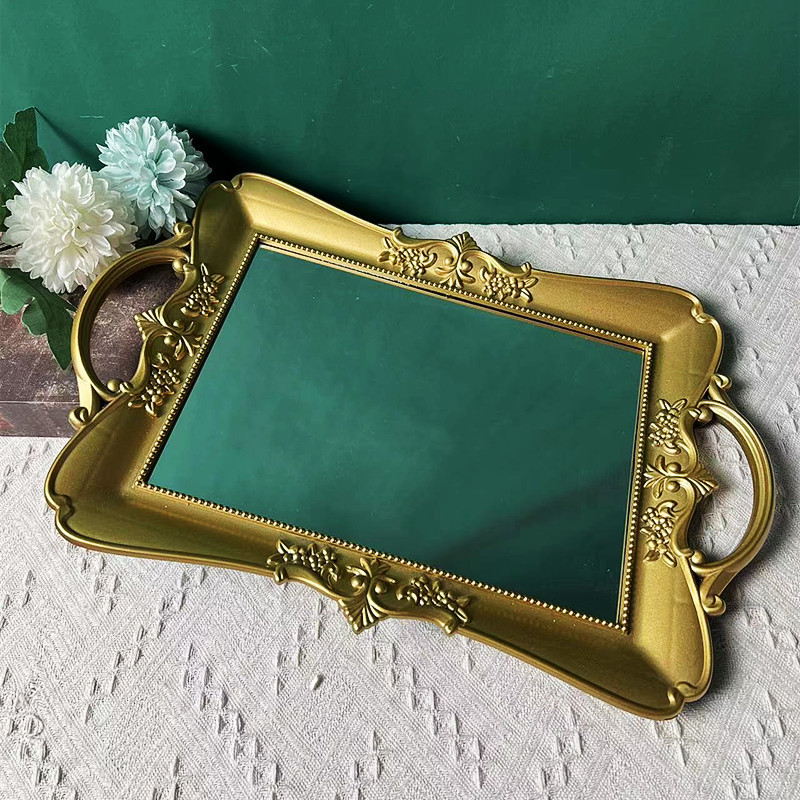 ヨーロッパのレトロな鏡面のトレーの美しい金のプリントの軽い豪華なトレーの美容院の精油のトレーの銀の金色の撮影の道具
