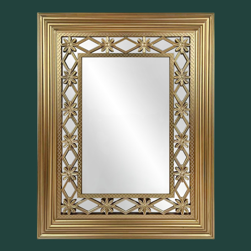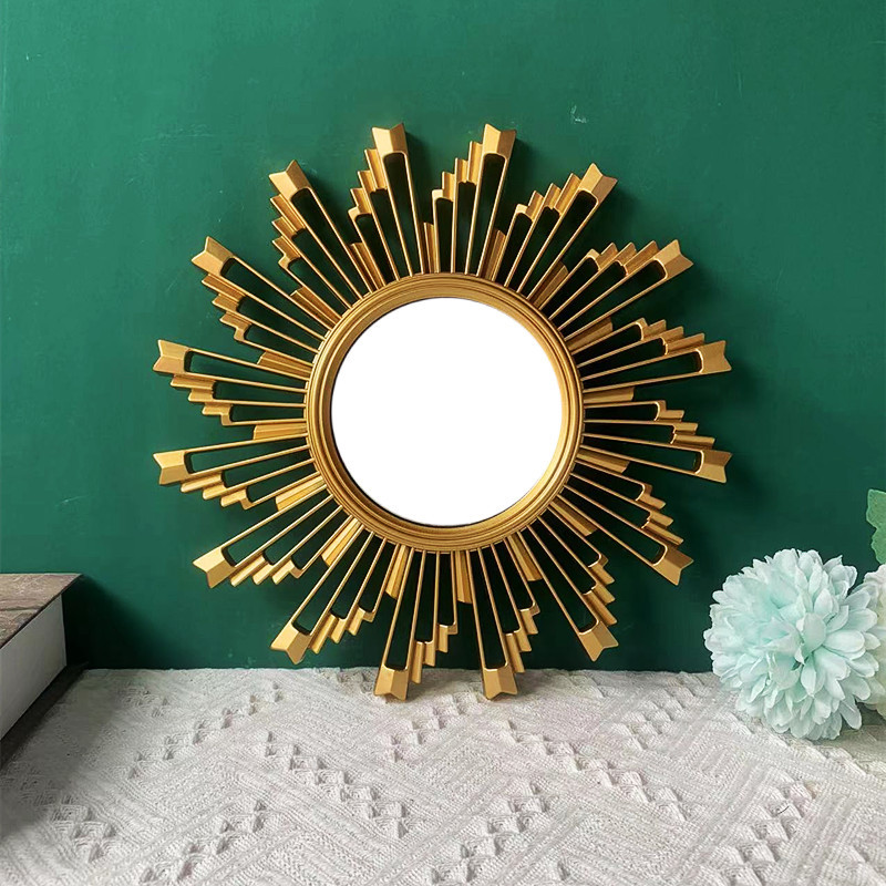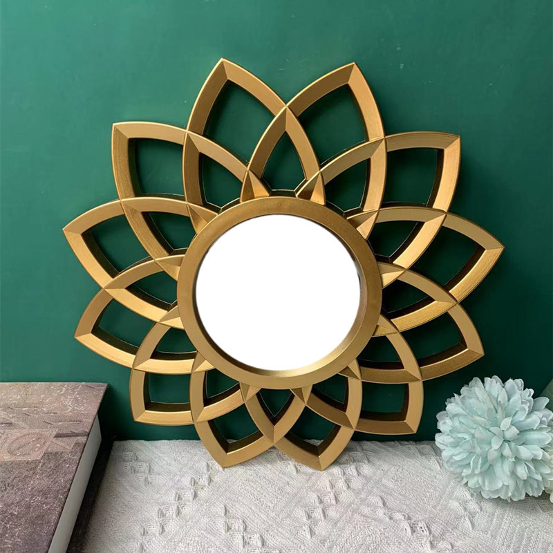 花形金色壁掛け鏡ins風手作り射出塗装鏡壁飾り化粧鏡家庭装飾品