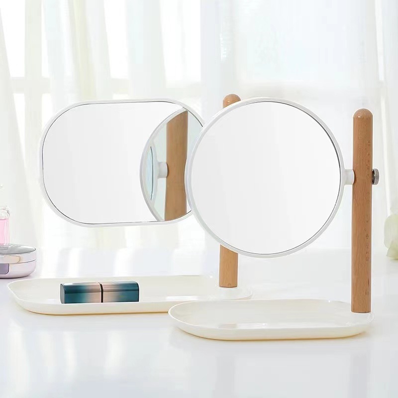 木製デスクトップミラーパレット付き両面拡大化粧鏡少女心デスクトップ化粧鏡寮プリンセスミラー