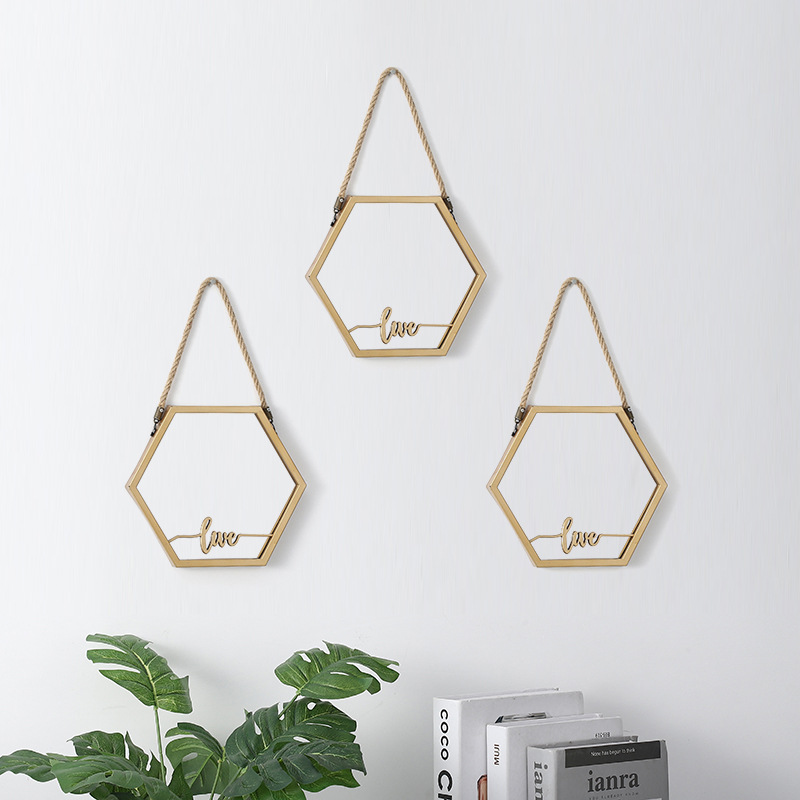 Insシンプル北欧スタイル幾何学的造形金色真鍮六角形鏡衛浴鏡玄関鏡化粧鏡