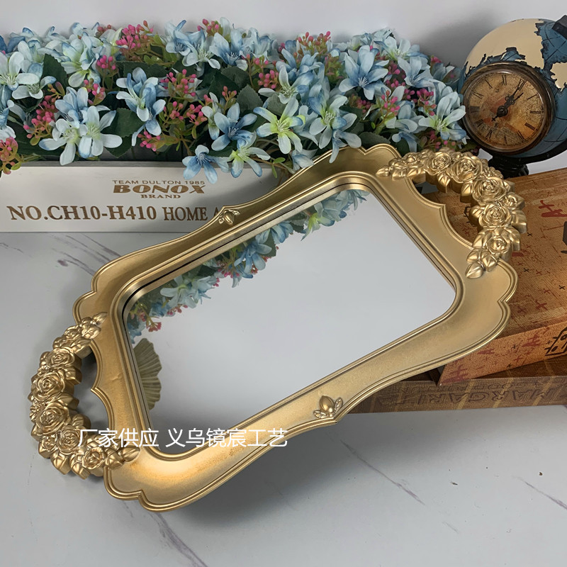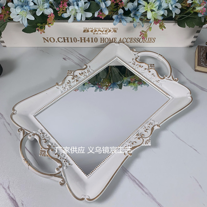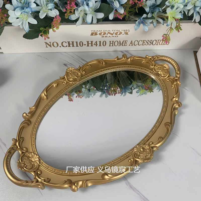 ヨーロッパのレトロなお茶の皿の家庭用の簡単なトレーの鏡のガラスの鏡面は多く楕円形の収納トレーの鏡を使います。