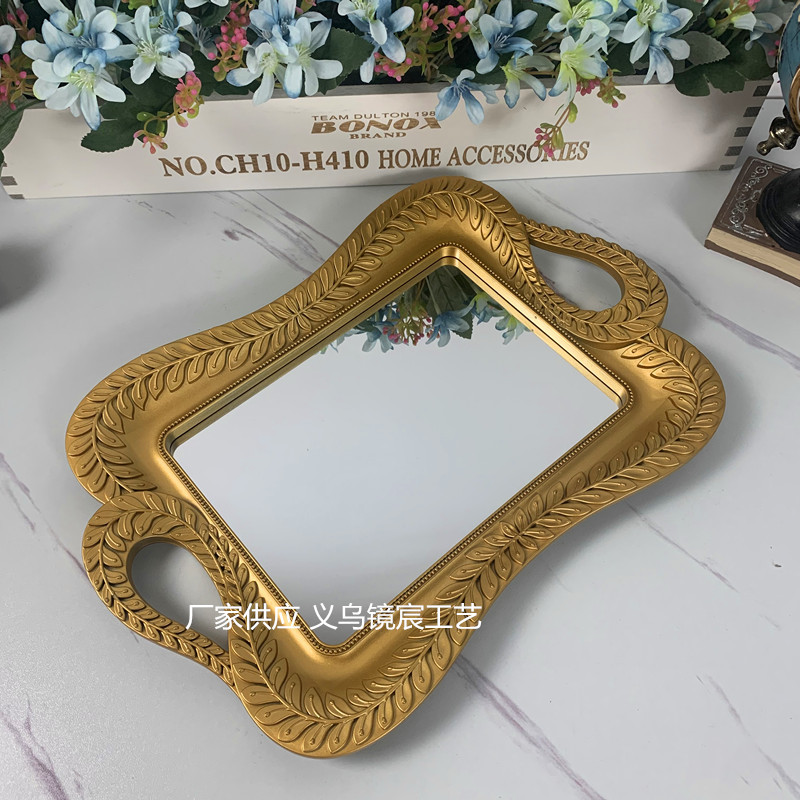 鏡宸新品上海市金色葉形状トレイミラープラスチックpp材質果物収納トレイミラークロスボーダー
