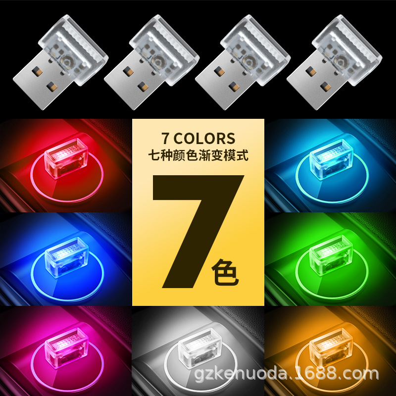 車内雰囲気灯usb呼吸灯無配線変色誘導知能七彩雰囲気灯led車内七色灯