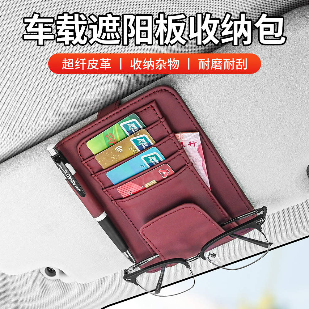 車載メガネクリップ多機能自動車サンバイザーカード名刺クリップレザー運転免許証手形ストラップ収納バッグ
