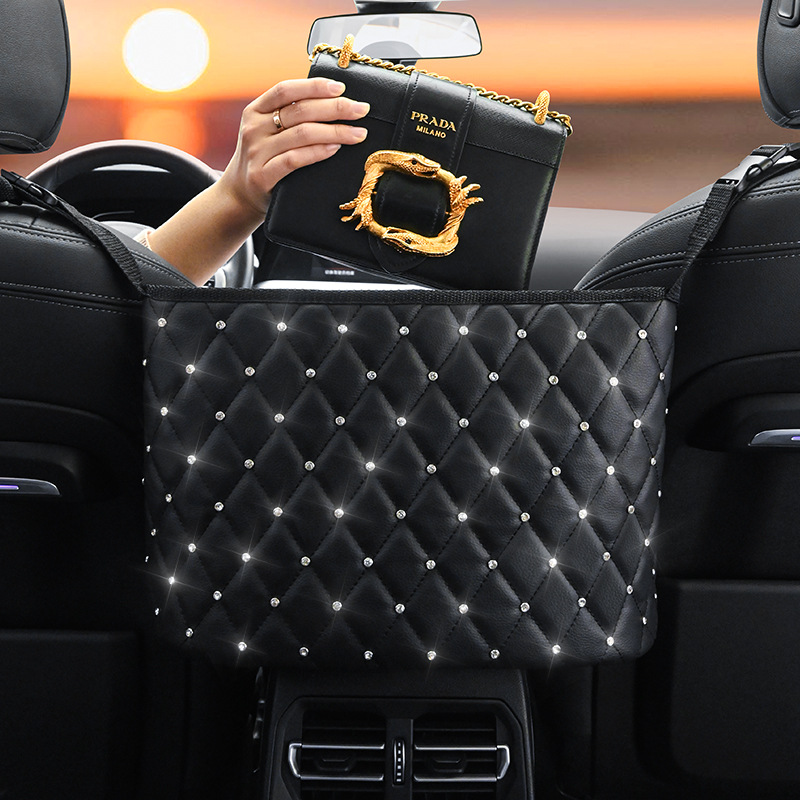 自動車2シート間収納ネットポケット収納車載バッグ網革吊り式車用置物収納袋通用