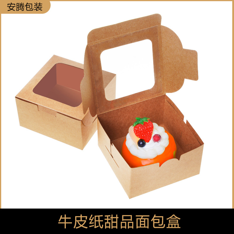 スポット卸売りデザートパンケーキクラフト紙箱透明pet窓付き焙煎洋菓子ピクニック箱