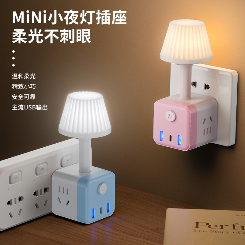 ルービックキューブソケットコンバータ USB コンバータヘッド急速充電 C ポートナイトライト付き携帯電話充電ポート多機能ソケット多孔質
