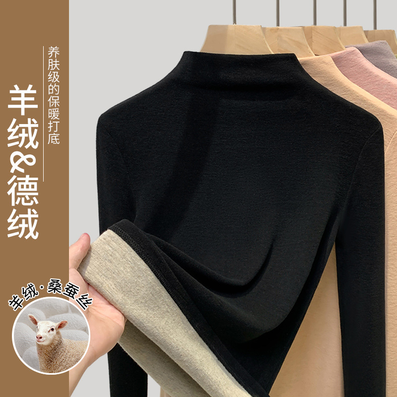 2025年新作 レディース ハーフタートルネック ドイツ製ベルベット素材 ボトムスシャツ 両面起毛Tシャツ 保温性のあるインナーウェア ウエストシェイプトップス