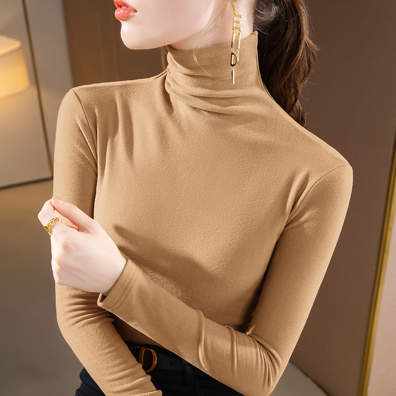 女性用ハーフタートルネックボトムシャツ、2025年新作レディース無地ベルベット長袖Tシャツ、暖かいインナーウェア、ウエストシェイピングトップ