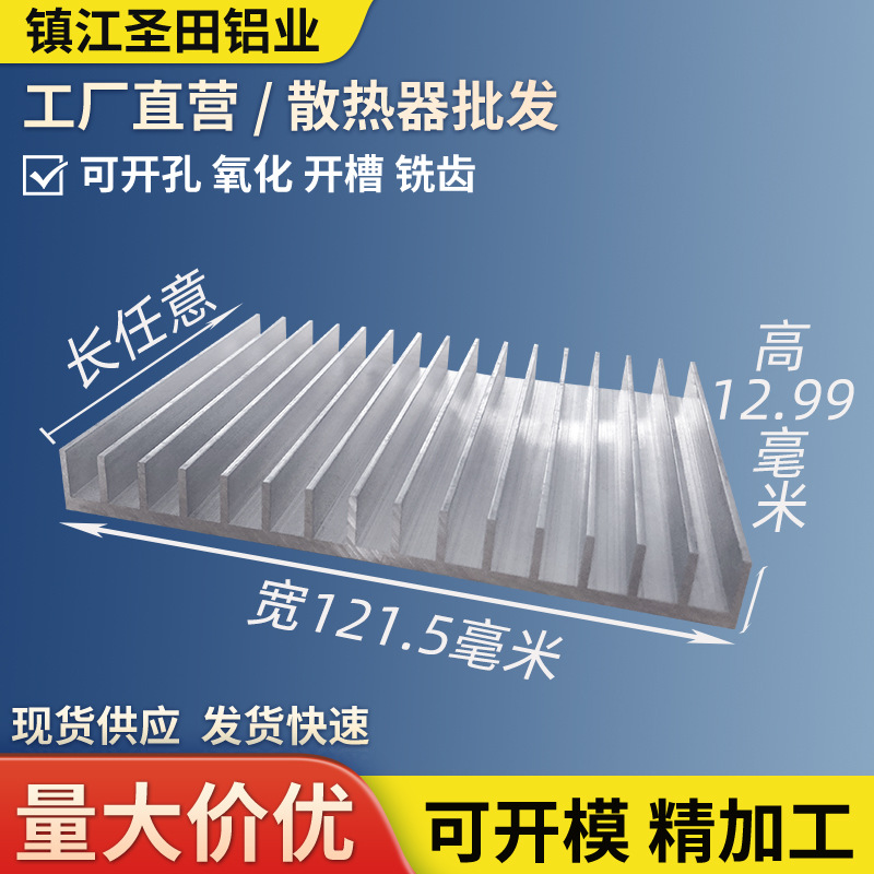 アルミ形材ヒートシンク小出力薄型電子放熱器チップ冷凍シート幅121.5高さ13アルミニウム合金