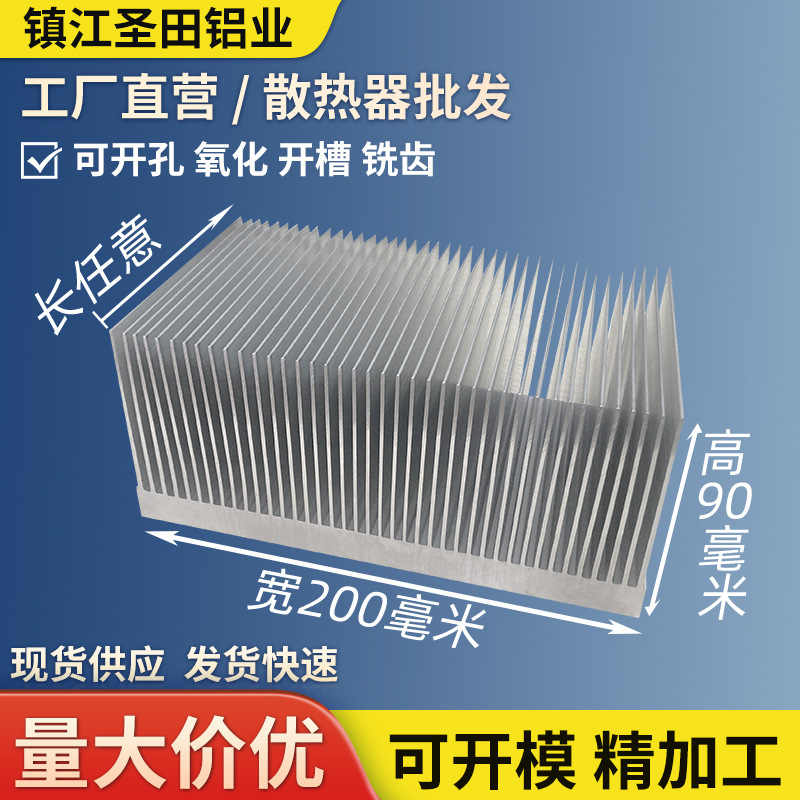 アルミ形材ヒートシンク高密度歯ハイパワー電子放熱器幅200高さ90mmアルミ合金板加工