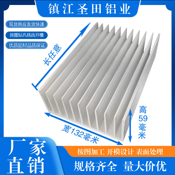 アルミ形材ヒートシンク電子放熱器固体大電力幅132mm * 高さ20放熱器アルミ材