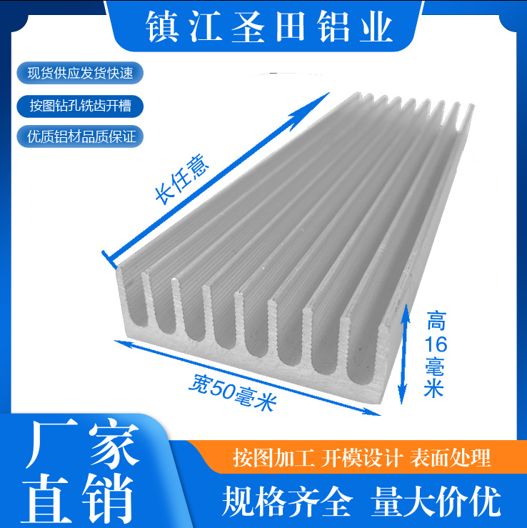 ヒートシンクアルミ形材小出力電子放熱器加工幅50mm * 高さ16アルミニウム合金アルミ材カスタム