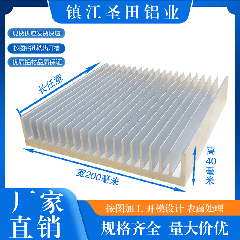 アルミ形材ヒートシンク放熱器アルミ大出力固体幅200 * 高さ40mmアルミ合金放熱板